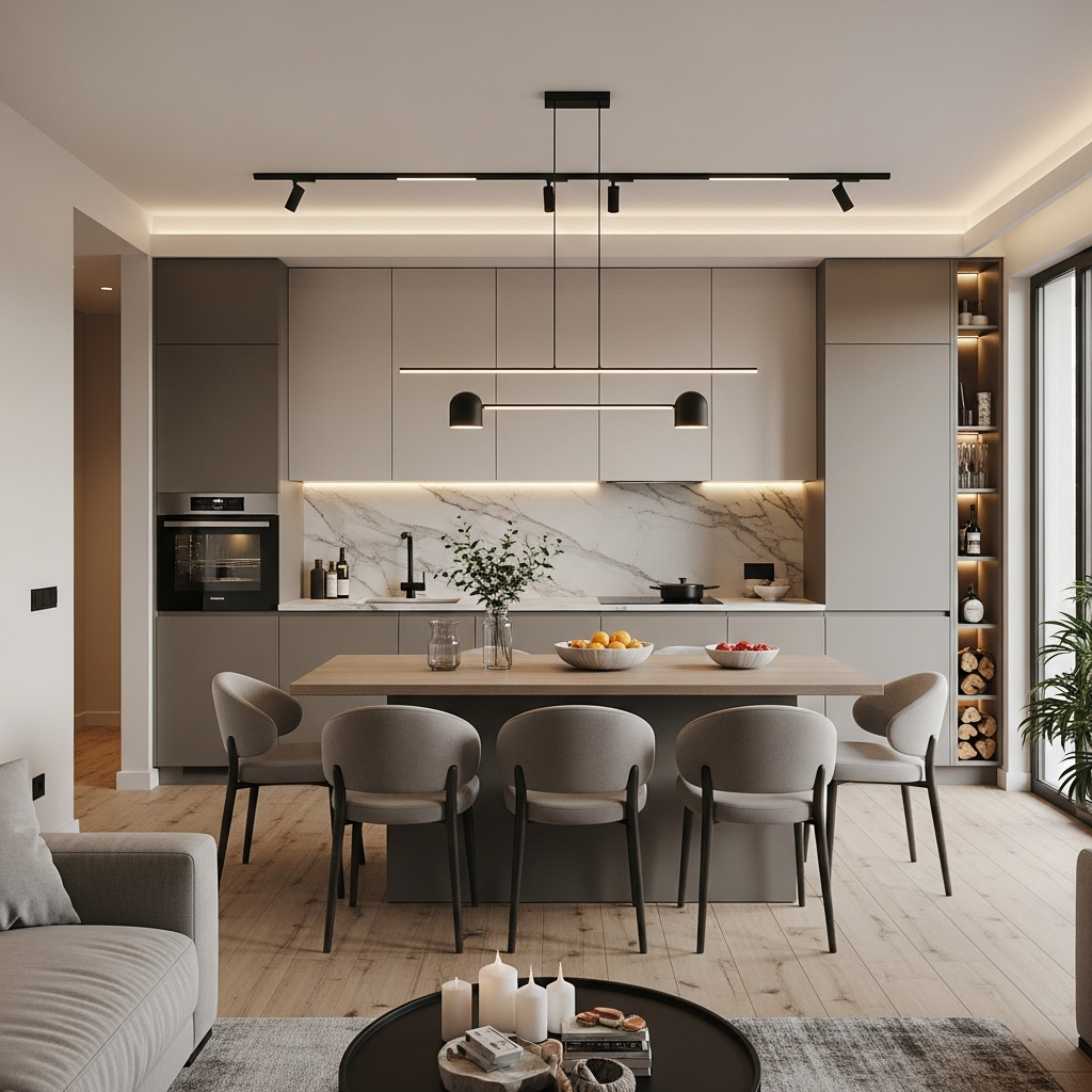 Otwarte plany mieszkań, które łączą kuchnię, jadalnię i salon w jedną, spójną przestrzeń, często uważa się za idealne rozwiązanie, żeby optycznie powiększyć małe mieszkanie. I rzeczywiście, kiedy usuniesz ściany działowe, wnętrze od razu wydaje się znacznie większe, jaśniejsze i bardziej przestronne. Brak fizycznych barier pozwala na swobodny przepływ światła i powietrza, co tworzy poczucie otwartości i nowoczesności. Taki design sprzyja też integracji domowników i gości, ułatwiając komunikację i wspólne spędzanie czasu. To niezaprzeczalny atut, zwłaszcza dla młodych par czy singli.